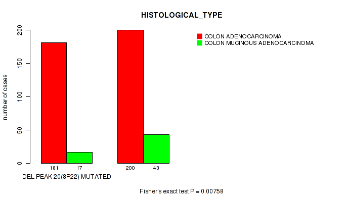 del_20p12.1 cnv correlated to 'HISTOLOGICAL_TYPE'.