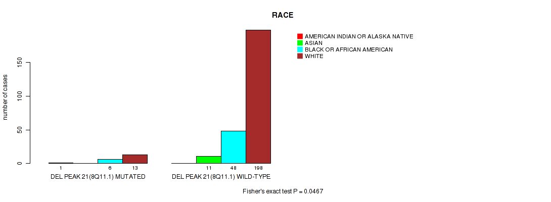 Figure S263. Get High-res Image Gene #68: 'del_21q11.2' versus Clinical Feature #8: 'HISTOLOGICAL_TYPE'