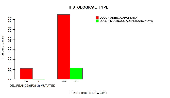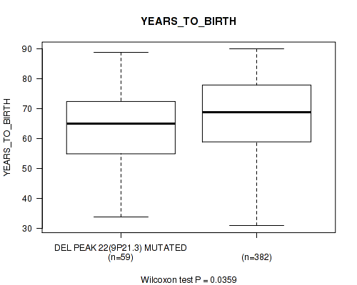 del_9p21.3 cnv correlated to 'YEARS_TO_BIRTH' and 'HISTOLOGICAL_TYPE'.