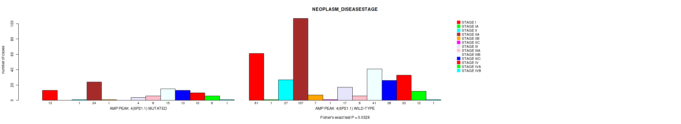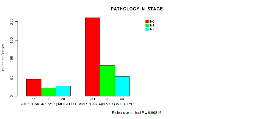 amp_6p21.1 cnv correlated to 'NEOPLASM_DISEASESTAGE', 'PATHOLOGY_N_STAGE', 'RADIATIONS_RADIATION_REGIMENINDICATION', and 'NUMBER_OF_LYMPH_NODES'.