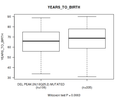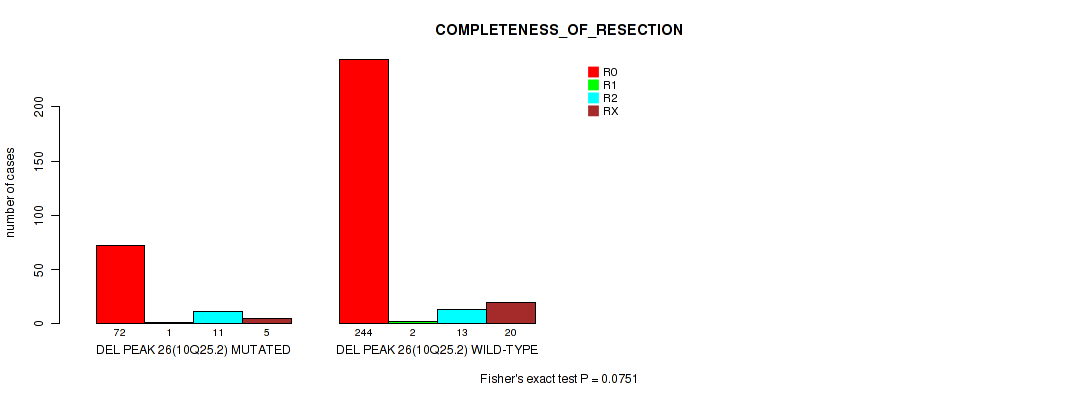 del_10q25.2 cnv correlated to 'YEARS_TO_BIRTH', 'NEOPLASM_DISEASESTAGE', 'PATHOLOGY_N_STAGE', 'PATHOLOGY_M_STAGE', 'COMPLETENESS_OF_RESECTION', and 'NUMBER_OF_LYMPH_NODES'.