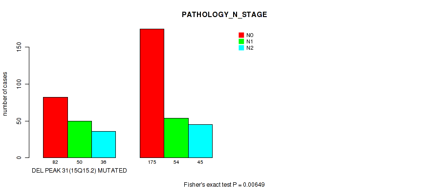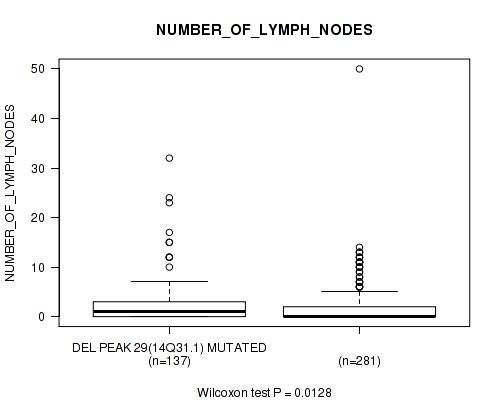 del_14q31.1 cnv correlated to 'PATHOLOGY_N_STAGE', 'PATHOLOGY_M_STAGE', 'HISTOLOGICAL_TYPE', and 'NUMBER_OF_LYMPH_NODES'.
