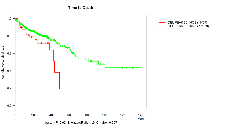 del_16q23.1 cnv correlated to 'Time to Death'.