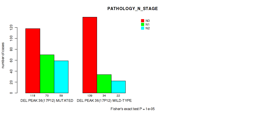 del_17p12 cnv correlated to 'YEARS_TO_BIRTH', 'NEOPLASM_DISEASESTAGE', 'PATHOLOGY_N_STAGE', 'PATHOLOGY_M_STAGE', 'HISTOLOGICAL_TYPE', and 'NUMBER_OF_LYMPH_NODES'.