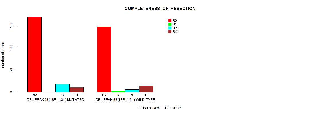 del_18p11.31 cnv correlated to 'YEARS_TO_BIRTH', 'NEOPLASM_DISEASESTAGE', 'PATHOLOGY_N_STAGE', 'PATHOLOGY_M_STAGE', 'HISTOLOGICAL_TYPE', 'COMPLETENESS_OF_RESECTION', and 'NUMBER_OF_LYMPH_NODES'.