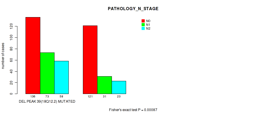 Figure S252. Get High-res Image Gene #65: 'del_18q21.2' versus Clinical Feature #5: 'PATHOLOGY_N_STAGE'