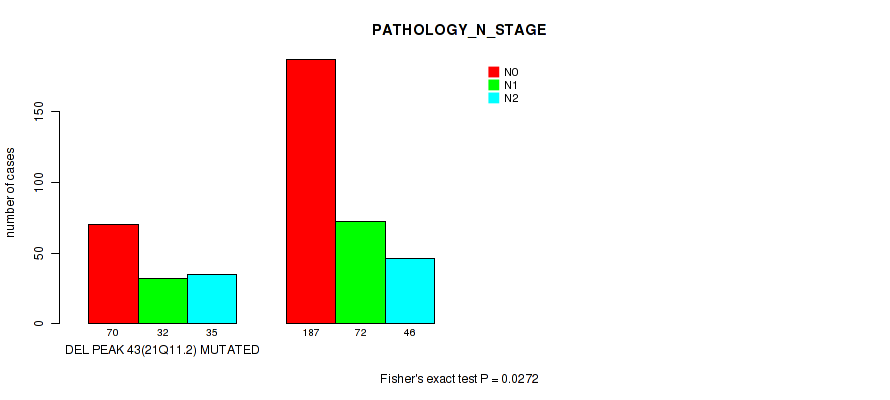 Figure S262. Get High-res Image Gene #68: 'del_21q11.2' versus Clinical Feature #5: 'PATHOLOGY_N_STAGE'