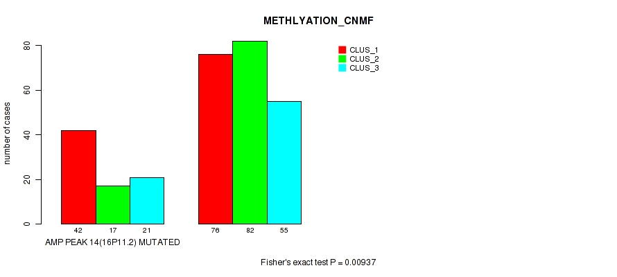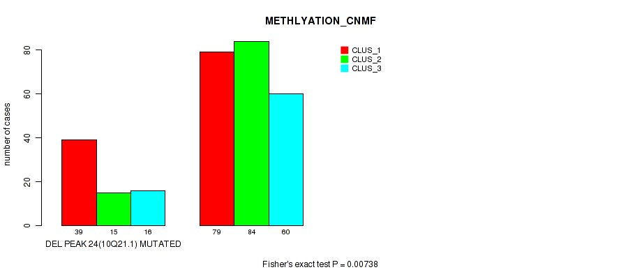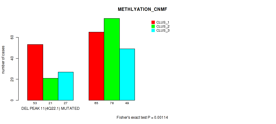 Table S387. Gene #68: 'del_21q11.2' versus Molecular Subtype #4: 'METHLYATION_CNMF'
