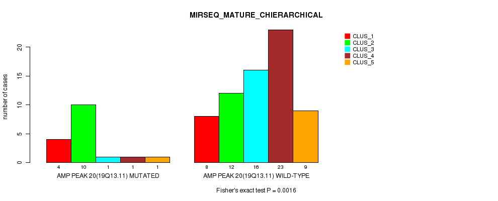 Table S384. Gene #67: 'del_20p12.1' versus Molecular Subtype #12: 'MIRSEQ_MATURE_CHIERARCHICAL'