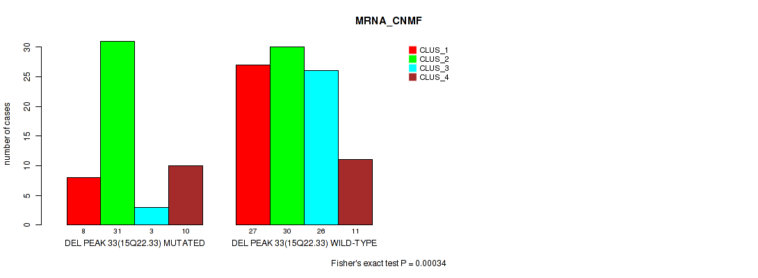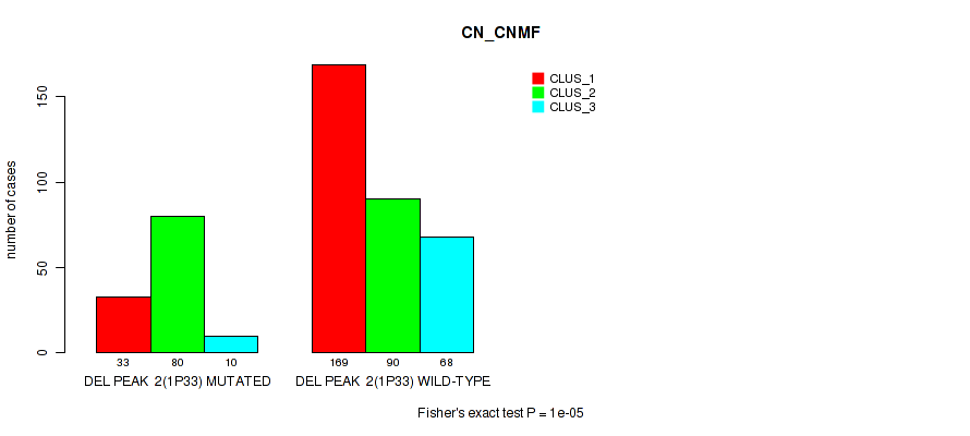 del_1p33 cnv correlated to 'MRNA_CNMF', 'CN_CNMF', 'METHLYATION_CNMF', 'MRNASEQ_CNMF', and 'MRNASEQ_CHIERARCHICAL'.