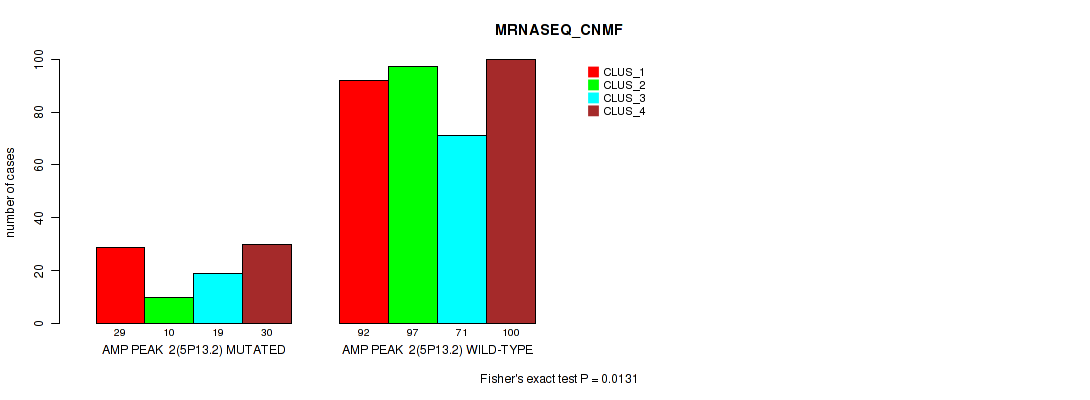 amp_5p13.2 cnv correlated to 'CN_CNMF', 'RPPA_CNMF', 'MRNASEQ_CNMF', and 'MRNASEQ_CHIERARCHICAL'.