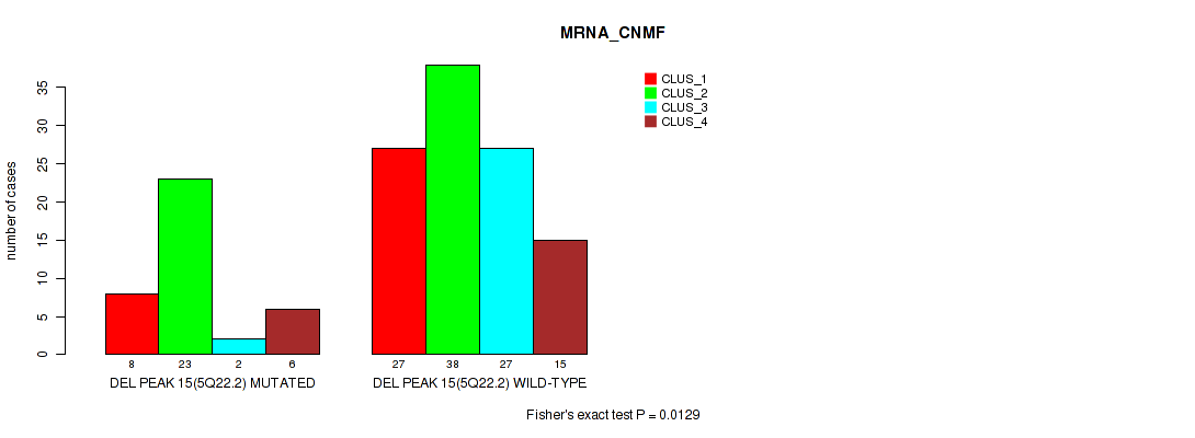 del_5q22.2 cnv correlated to 'MRNA_CNMF', 'MRNA_CHIERARCHICAL', 'CN_CNMF', 'RPPA_CNMF', 'MRNASEQ_CNMF', and 'MRNASEQ_CHIERARCHICAL'.
