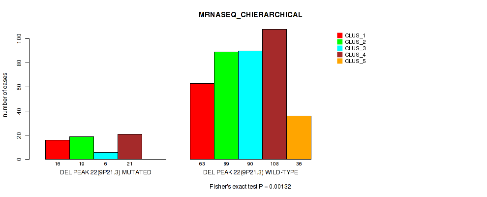 Figure S391. Get High-res Image Gene #69: 'del_22q13.32' versus Molecular Subtype #2: 'MRNA_CHIERARCHICAL'