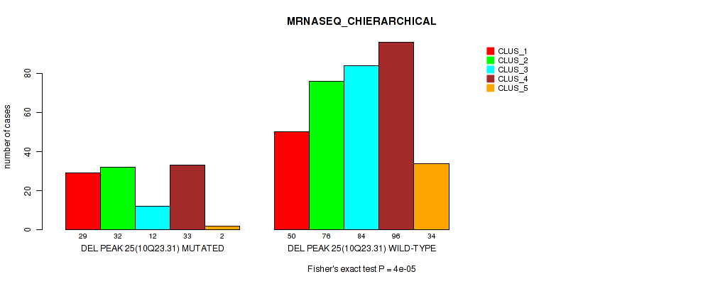 del_10q23.31 cnv correlated to 'CN_CNMF', 'METHLYATION_CNMF', 'MRNASEQ_CNMF', and 'MRNASEQ_CHIERARCHICAL'.