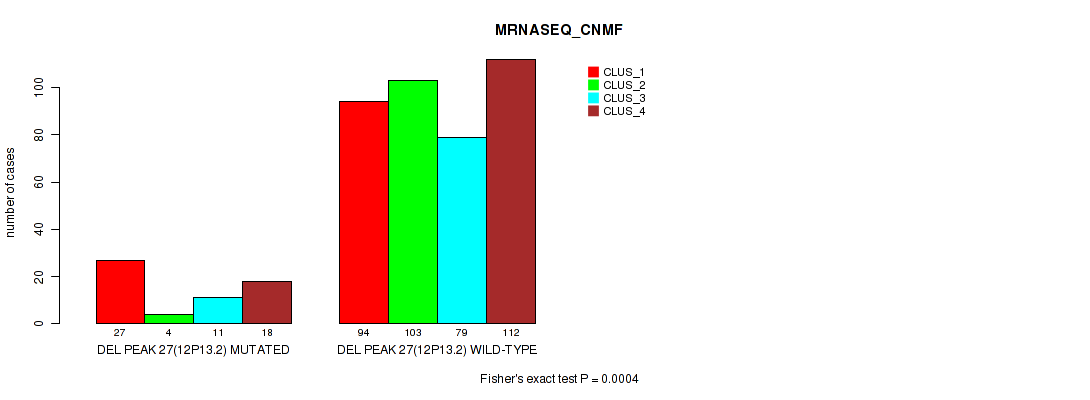 del_12p13.2 cnv correlated to 'MRNA_CNMF', 'MRNA_CHIERARCHICAL', 'CN_CNMF', 'METHLYATION_CNMF', 'MRNASEQ_CNMF', 'MRNASEQ_CHIERARCHICAL', and 'MIRSEQ_MATURE_CHIERARCHICAL'.