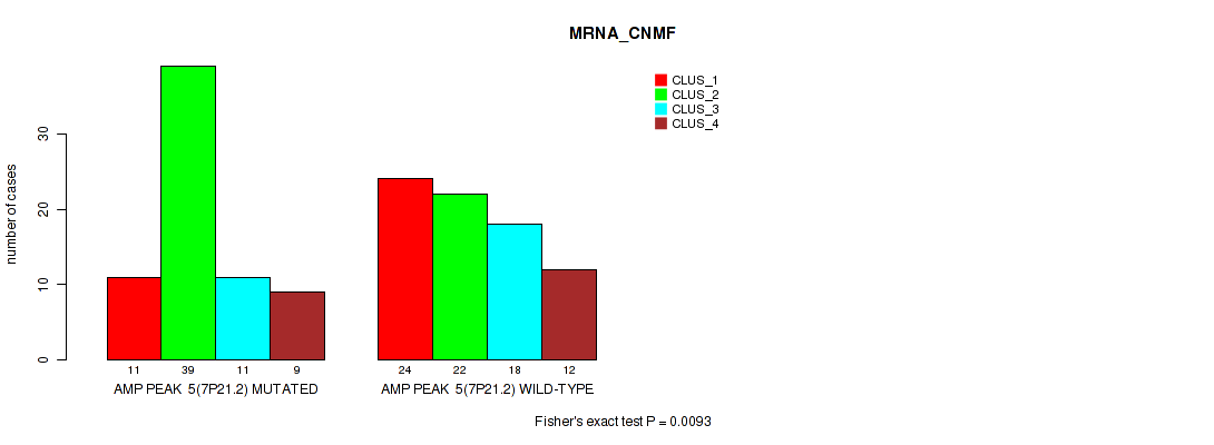 amp_7p21.2 cnv correlated to 'MRNA_CNMF', 'MRNA_CHIERARCHICAL', 'CN_CNMF', 'METHLYATION_CNMF', 'RPPA_CNMF', 'RPPA_CHIERARCHICAL', 'MRNASEQ_CNMF', 'MRNASEQ_CHIERARCHICAL', and 'MIRSEQ_MATURE_CHIERARCHICAL'.