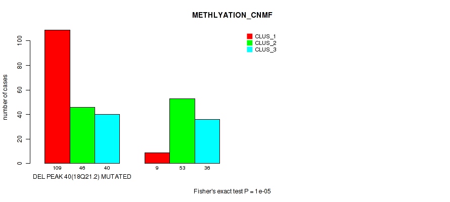 del_18q21.2 cnv correlated to 'MRNA_CNMF', 'MRNA_CHIERARCHICAL', 'CN_CNMF', 'METHLYATION_CNMF', 'RPPA_CNMF', 'RPPA_CHIERARCHICAL', 'MRNASEQ_CNMF', 'MRNASEQ_CHIERARCHICAL', 'MIRSEQ_CHIERARCHICAL', and 'MIRSEQ_MATURE_CHIERARCHICAL'.