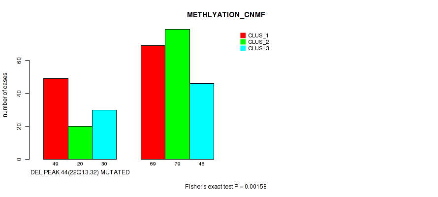 Figure S393. Get High-res Image Gene #69: 'del_22q13.32' versus Molecular Subtype #4: 'METHLYATION_CNMF'