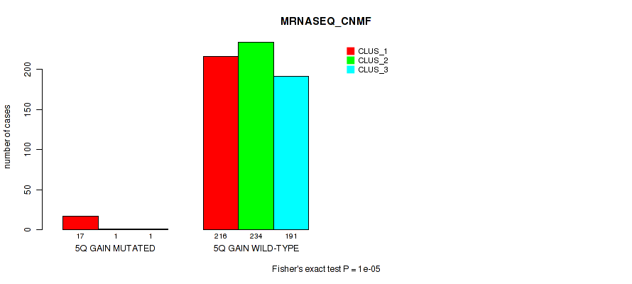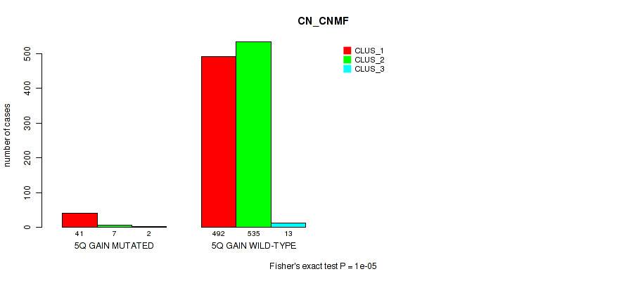 5q gain cnv correlated to 'CN_CNMF', 'METHLYATION_CNMF', 'MRNASEQ_CNMF', 'MRNASEQ_CHIERARCHICAL', 'MIRSEQ_CHIERARCHICAL', 'MIRSEQ_MATURE_CNMF', and 'MIRSEQ_MATURE_CHIERARCHICAL'.