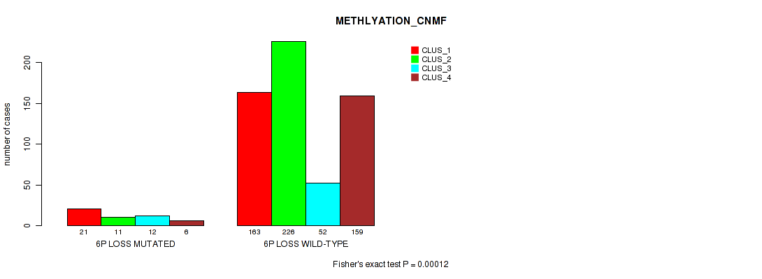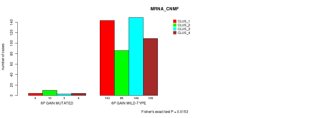 6p gain cnv correlated to 'MRNA_CNMF', 'METHLYATION_CNMF', 'MIRSEQ_CNMF', and 'MIRSEQ_CHIERARCHICAL'.