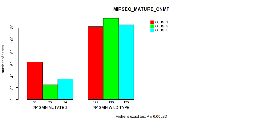 7p gain cnv correlated to 'MRNA_CNMF', 'MRNA_CHIERARCHICAL', 'MIR_CNMF', 'MIR_CHIERARCHICAL', 'CN_CNMF', 'METHLYATION_CNMF', 'MRNASEQ_CNMF', 'MRNASEQ_CHIERARCHICAL', 'MIRSEQ_CNMF', 'MIRSEQ_CHIERARCHICAL', 'MIRSEQ_MATURE_CNMF', and 'MIRSEQ_MATURE_CHIERARCHICAL'.