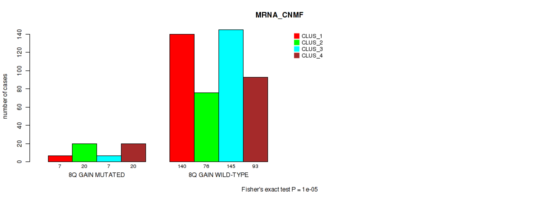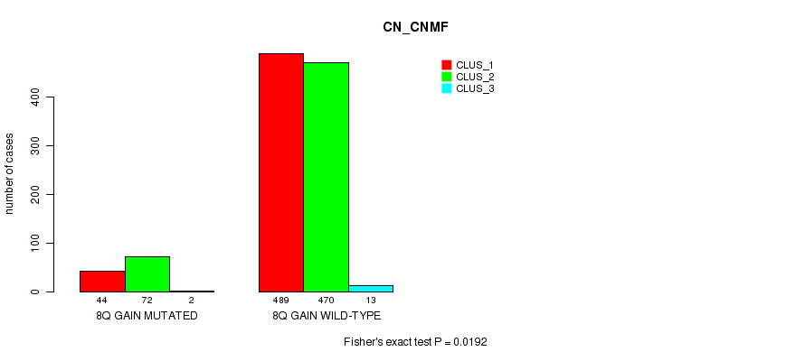 8q gain cnv correlated to 'MRNA_CNMF', 'MRNA_CHIERARCHICAL', 'MIR_CNMF', 'CN_CNMF', 'METHLYATION_CNMF', 'MRNASEQ_CHIERARCHICAL', 'MIRSEQ_MATURE_CNMF', and 'MIRSEQ_MATURE_CHIERARCHICAL'.