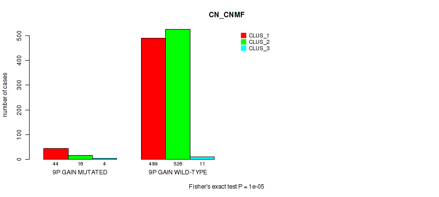 9p gain cnv correlated to 'MRNA_CNMF', 'MRNA_CHIERARCHICAL', 'CN_CNMF', 'METHLYATION_CNMF', 'MRNASEQ_CNMF', 'MRNASEQ_CHIERARCHICAL', and 'MIRSEQ_CHIERARCHICAL'.