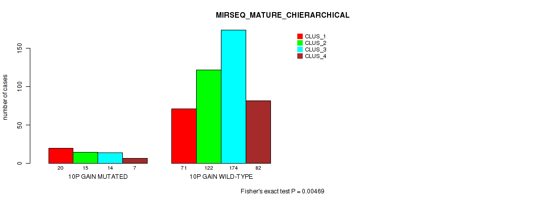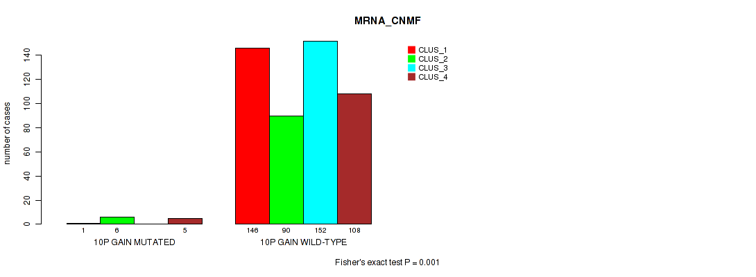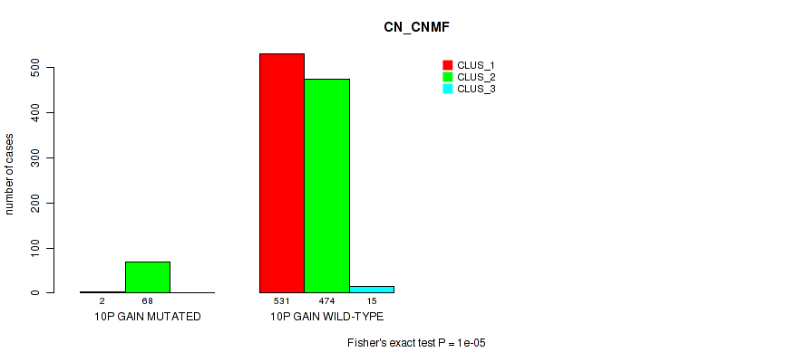 10p gain cnv correlated to 'MRNA_CNMF', 'MRNA_CHIERARCHICAL', 'CN_CNMF', 'METHLYATION_CNMF', 'MRNASEQ_CNMF', 'MRNASEQ_CHIERARCHICAL', and 'MIRSEQ_MATURE_CHIERARCHICAL'.