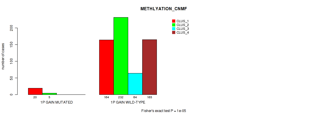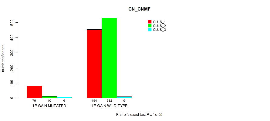 1p gain cnv correlated to 'CN_CNMF', 'METHLYATION_CNMF', 'MRNASEQ_CNMF', 'MRNASEQ_CHIERARCHICAL', 'MIRSEQ_CNMF', 'MIRSEQ_CHIERARCHICAL', 'MIRSEQ_MATURE_CNMF', and 'MIRSEQ_MATURE_CHIERARCHICAL'.