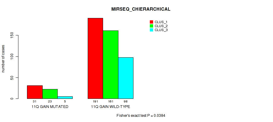 11q gain cnv correlated to 'CN_CNMF', 'METHLYATION_CNMF', 'MRNASEQ_CNMF', 'MRNASEQ_CHIERARCHICAL', 'MIRSEQ_CHIERARCHICAL', and 'MIRSEQ_MATURE_CHIERARCHICAL'.
