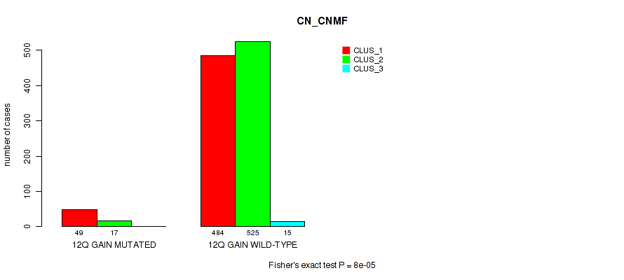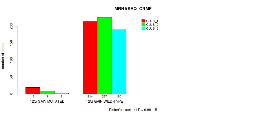 12q gain cnv correlated to 'MIR_CHIERARCHICAL', 'CN_CNMF', 'METHLYATION_CNMF', 'MRNASEQ_CNMF', 'MRNASEQ_CHIERARCHICAL', 'MIRSEQ_CNMF', and 'MIRSEQ_CHIERARCHICAL'.