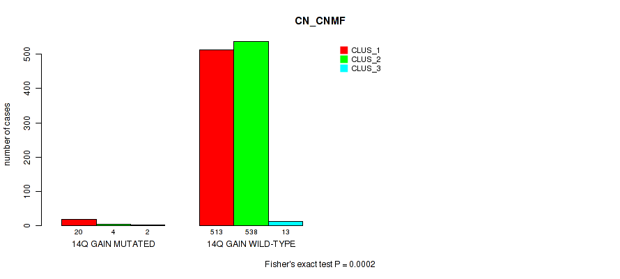14q gain cnv correlated to 'MIR_CNMF' and 'CN_CNMF'.