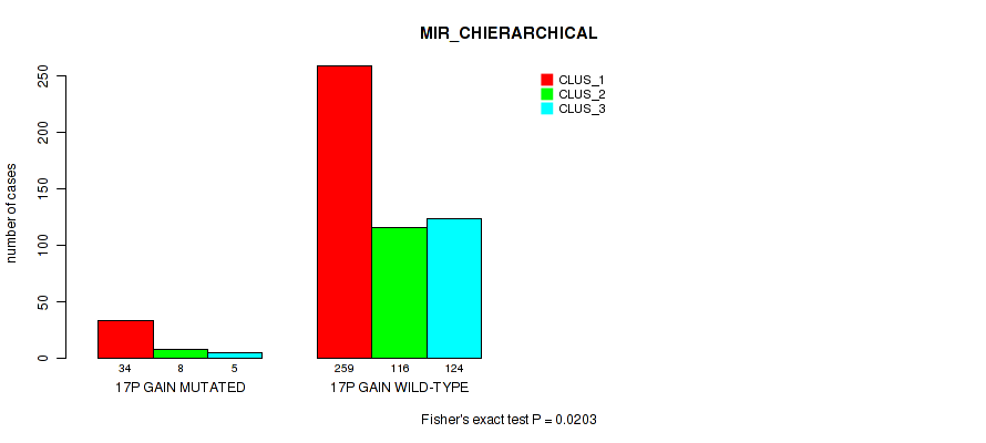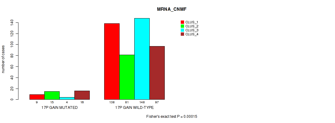 17p gain cnv correlated to 'MRNA_CNMF', 'MRNA_CHIERARCHICAL', 'MIR_CHIERARCHICAL', 'CN_CNMF', and 'MRNASEQ_CNMF'.