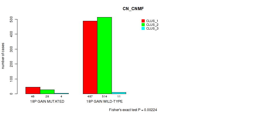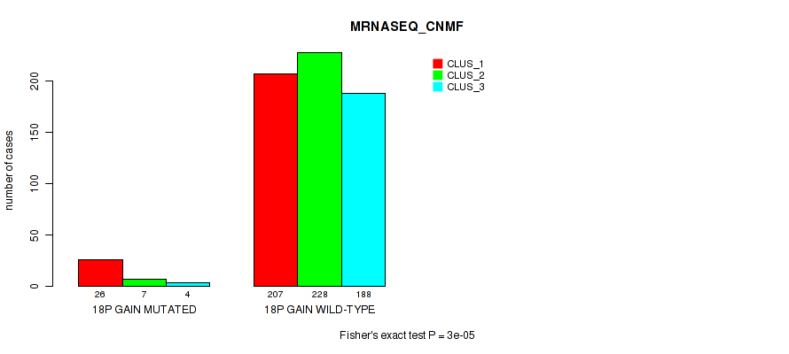 18p gain cnv correlated to 'MRNA_CNMF', 'MRNA_CHIERARCHICAL', 'CN_CNMF', 'METHLYATION_CNMF', 'MRNASEQ_CNMF', 'MRNASEQ_CHIERARCHICAL', and 'MIRSEQ_MATURE_CHIERARCHICAL'.