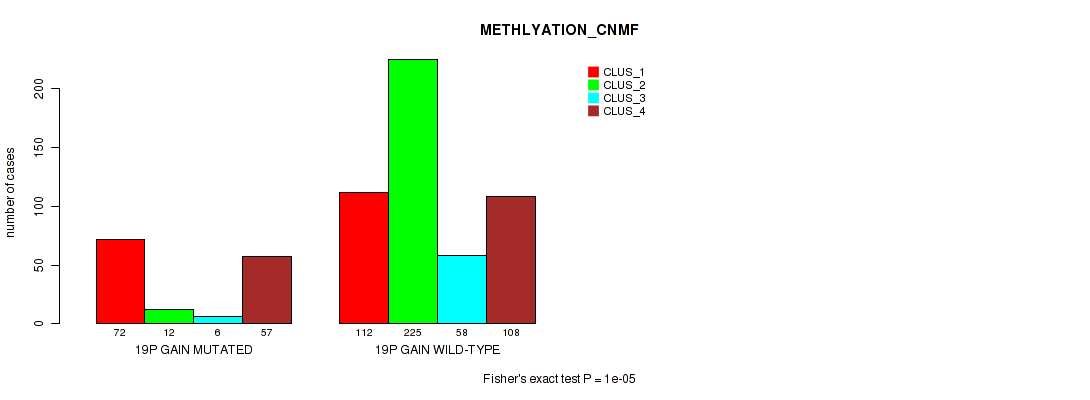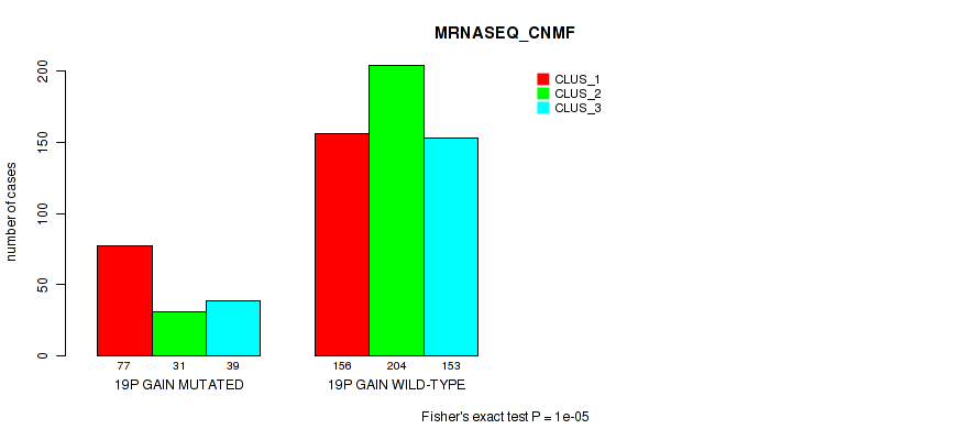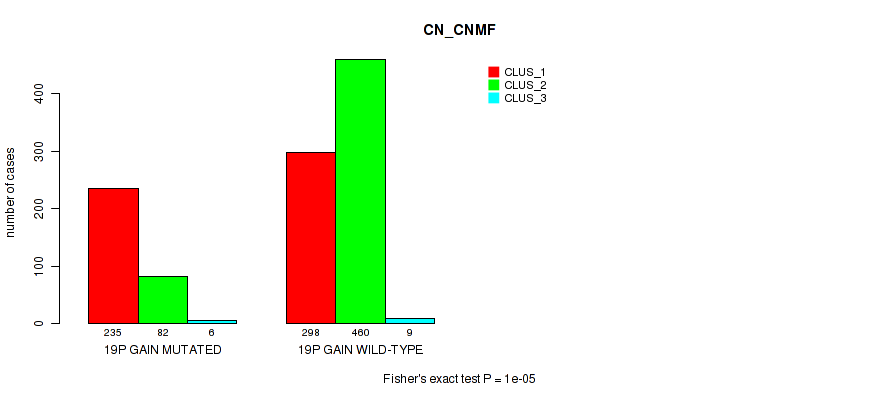 19p gain cnv correlated to 'MRNA_CNMF', 'MRNA_CHIERARCHICAL', 'MIR_CHIERARCHICAL', 'CN_CNMF', 'METHLYATION_CNMF', 'MRNASEQ_CNMF', 'MRNASEQ_CHIERARCHICAL', 'MIRSEQ_CNMF', 'MIRSEQ_CHIERARCHICAL', and 'MIRSEQ_MATURE_CHIERARCHICAL'.