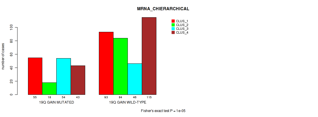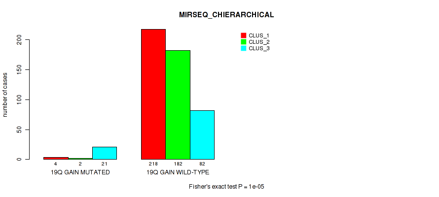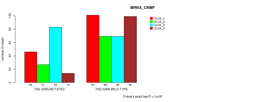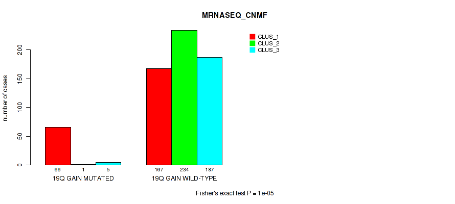 19q gain cnv correlated to 'MRNA_CNMF', 'MRNA_CHIERARCHICAL', 'MIR_CHIERARCHICAL', 'CN_CNMF', 'METHLYATION_CNMF', 'MRNASEQ_CNMF', 'MRNASEQ_CHIERARCHICAL', 'MIRSEQ_CNMF', 'MIRSEQ_CHIERARCHICAL', 'MIRSEQ_MATURE_CNMF', and 'MIRSEQ_MATURE_CHIERARCHICAL'.