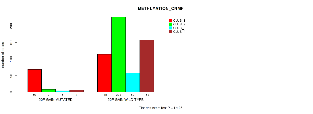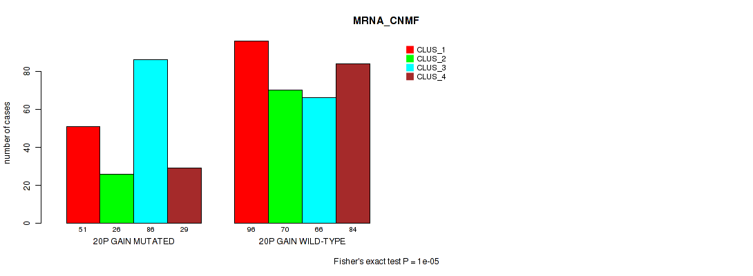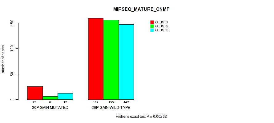 20p gain cnv correlated to 'MRNA_CNMF', 'MRNA_CHIERARCHICAL', 'MIR_CNMF', 'MIR_CHIERARCHICAL', 'CN_CNMF', 'METHLYATION_CNMF', 'MRNASEQ_CNMF', 'MRNASEQ_CHIERARCHICAL', 'MIRSEQ_CHIERARCHICAL', 'MIRSEQ_MATURE_CNMF', and 'MIRSEQ_MATURE_CHIERARCHICAL'.