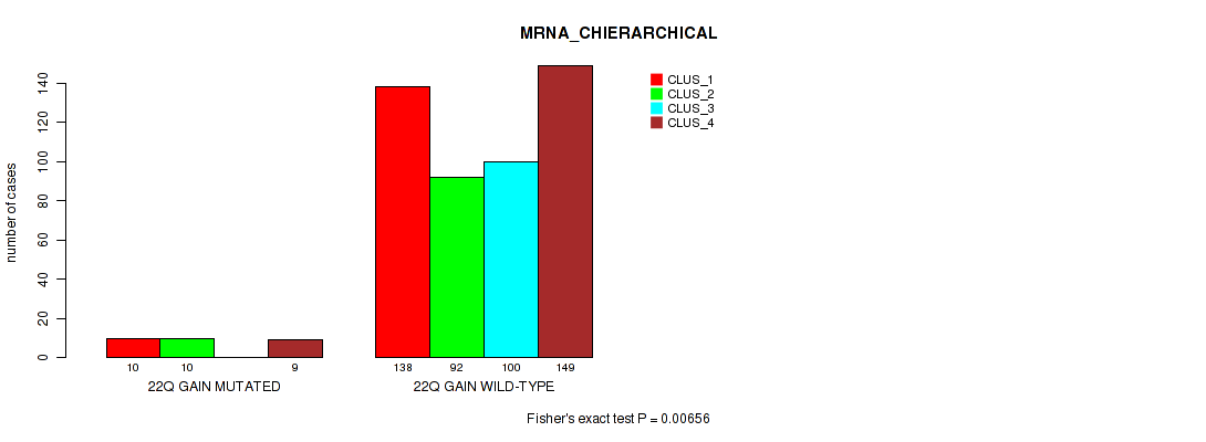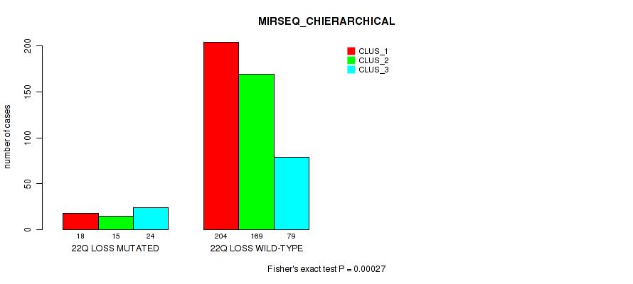 Figure S481. Get High-res Image Gene #80: '22q loss' versus Molecular Subtype #10: 'MIRSEQ_CHIERARCHICAL'
