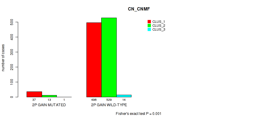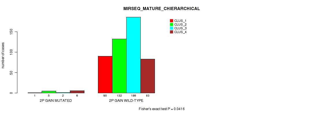 2p gain cnv correlated to 'CN_CNMF', 'MRNASEQ_CNMF', 'MRNASEQ_CHIERARCHICAL', 'MIRSEQ_CHIERARCHICAL', and 'MIRSEQ_MATURE_CHIERARCHICAL'.
