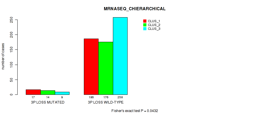 3p loss cnv correlated to 'MRNASEQ_CNMF', 'MRNASEQ_CHIERARCHICAL', 'MIRSEQ_CNMF', 'MIRSEQ_CHIERARCHICAL', and 'MIRSEQ_MATURE_CHIERARCHICAL'.