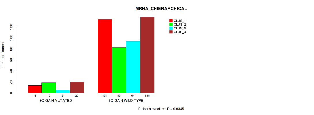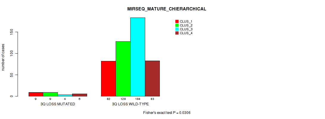 3q loss cnv correlated to 'MRNASEQ_CHIERARCHICAL', 'MIRSEQ_CNMF', 'MIRSEQ_CHIERARCHICAL', and 'MIRSEQ_MATURE_CHIERARCHICAL'.