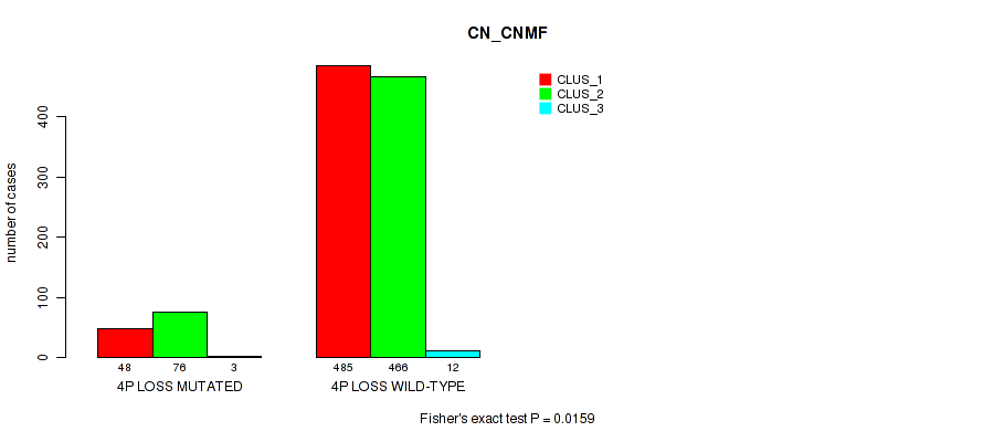 4p loss cnv correlated to 'MRNA_CNMF', 'MRNA_CHIERARCHICAL', 'CN_CNMF', 'METHLYATION_CNMF', 'MRNASEQ_CHIERARCHICAL', 'MIRSEQ_CNMF', 'MIRSEQ_CHIERARCHICAL', 'MIRSEQ_MATURE_CNMF', and 'MIRSEQ_MATURE_CHIERARCHICAL'.