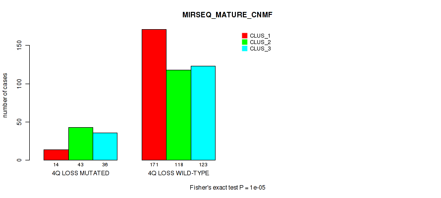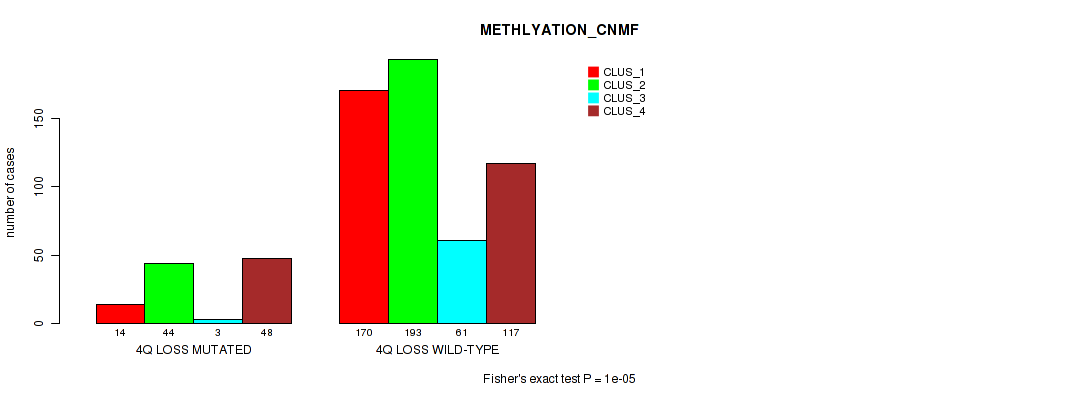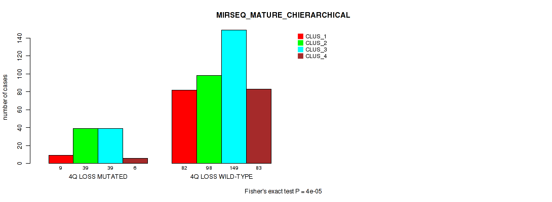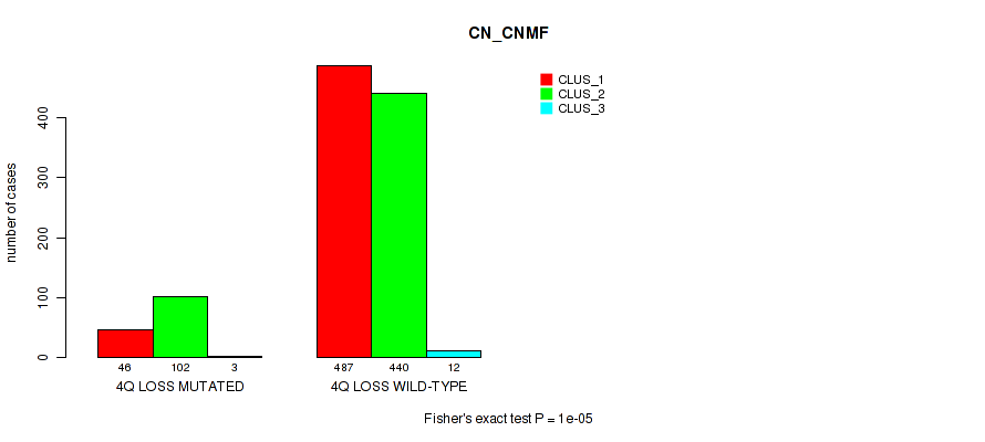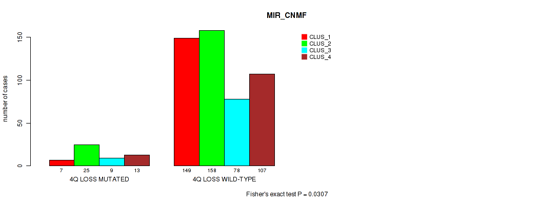4q loss cnv correlated to 'MRNA_CNMF', 'MRNA_CHIERARCHICAL', 'MIR_CNMF', 'CN_CNMF', 'METHLYATION_CNMF', 'MRNASEQ_CNMF', 'MRNASEQ_CHIERARCHICAL', 'MIRSEQ_CNMF', 'MIRSEQ_CHIERARCHICAL', 'MIRSEQ_MATURE_CNMF', and 'MIRSEQ_MATURE_CHIERARCHICAL'.