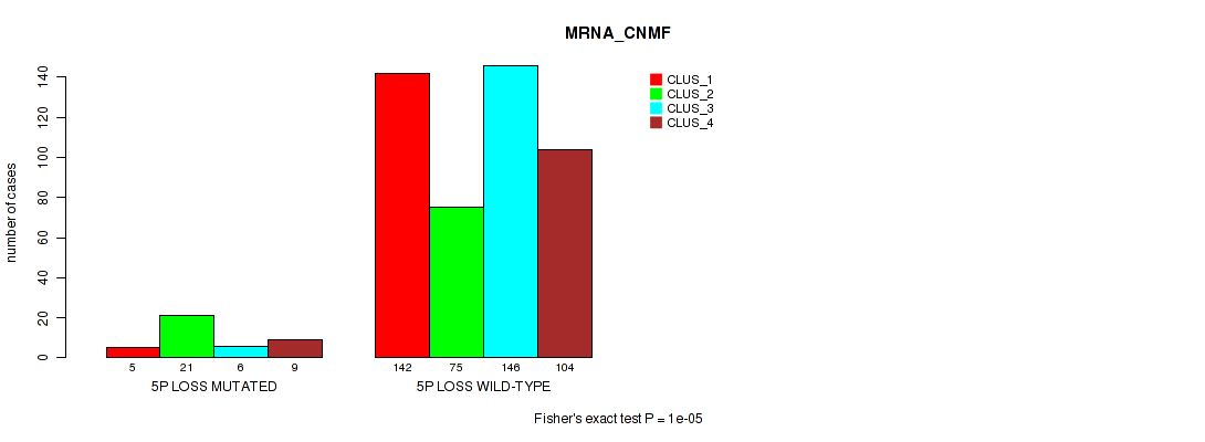 5p loss cnv correlated to 'MRNA_CNMF', 'MRNA_CHIERARCHICAL', 'MIR_CNMF', 'CN_CNMF', 'METHLYATION_CNMF', and 'MRNASEQ_CHIERARCHICAL'.