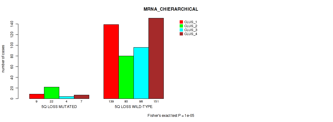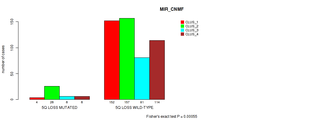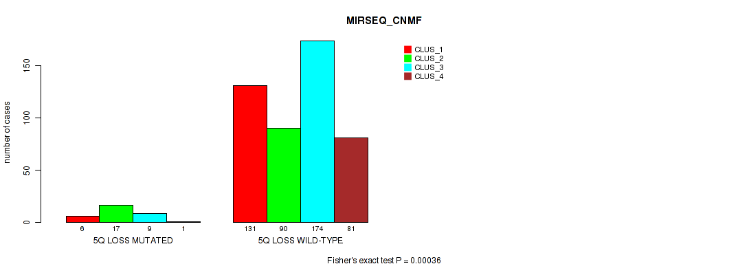 5q loss cnv correlated to 'MRNA_CNMF', 'MRNA_CHIERARCHICAL', 'MIR_CNMF', 'CN_CNMF', 'METHLYATION_CNMF', 'MRNASEQ_CHIERARCHICAL', and 'MIRSEQ_CNMF'.