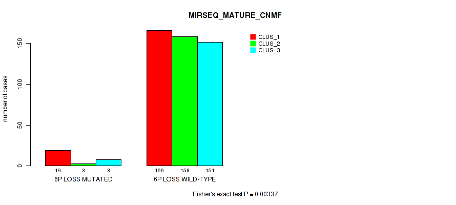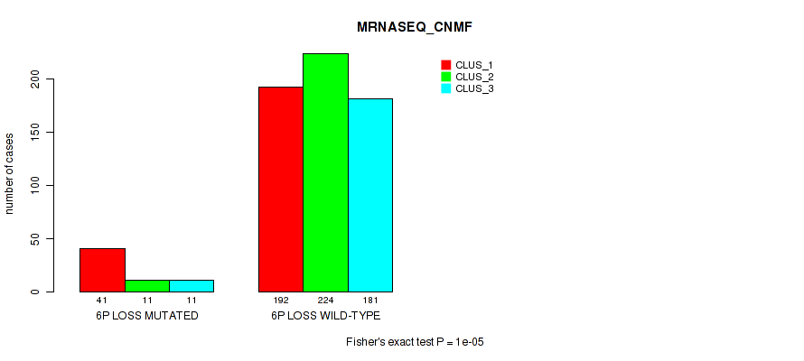 6p loss cnv correlated to 'CN_CNMF', 'METHLYATION_CNMF', 'MRNASEQ_CNMF', 'MRNASEQ_CHIERARCHICAL', 'MIRSEQ_MATURE_CNMF', and 'MIRSEQ_MATURE_CHIERARCHICAL'.