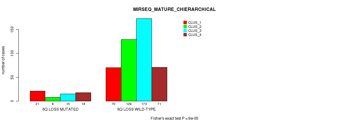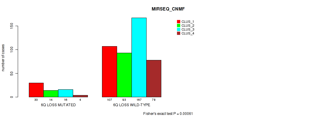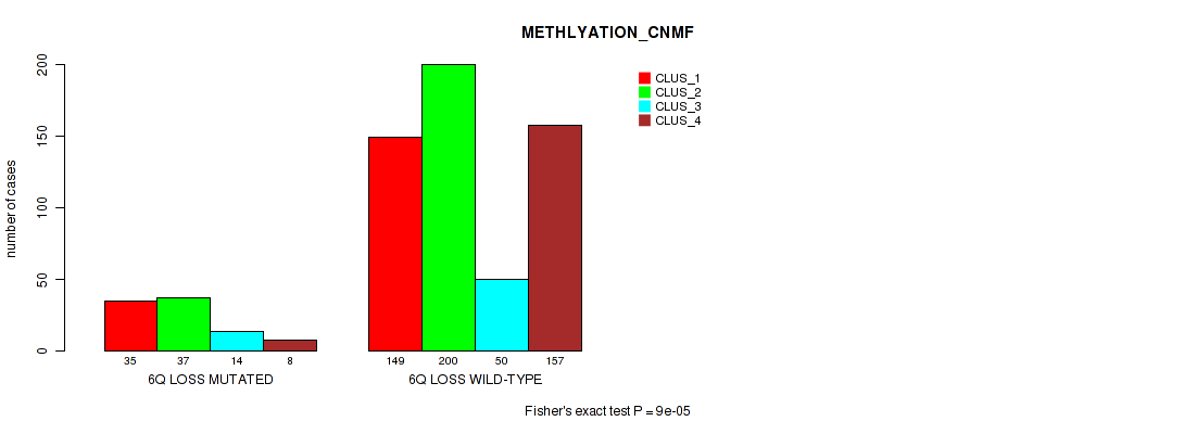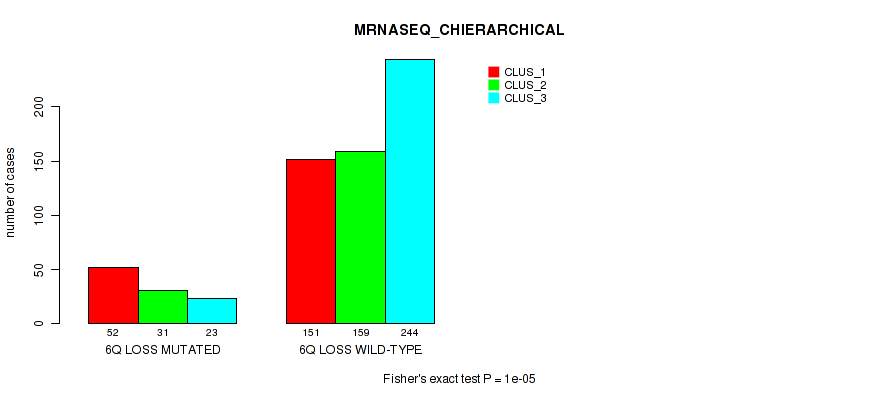 6q loss cnv correlated to 'CN_CNMF', 'METHLYATION_CNMF', 'MRNASEQ_CNMF', 'MRNASEQ_CHIERARCHICAL', 'MIRSEQ_CNMF', 'MIRSEQ_MATURE_CNMF', and 'MIRSEQ_MATURE_CHIERARCHICAL'.