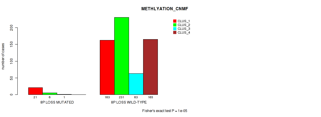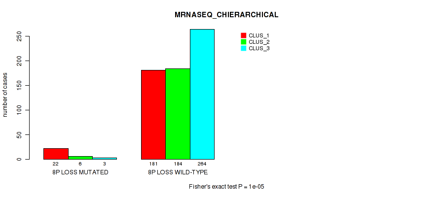 8p loss cnv correlated to 'CN_CNMF', 'METHLYATION_CNMF', 'MRNASEQ_CNMF', 'MRNASEQ_CHIERARCHICAL', 'MIRSEQ_CNMF', 'MIRSEQ_CHIERARCHICAL', and 'MIRSEQ_MATURE_CHIERARCHICAL'.