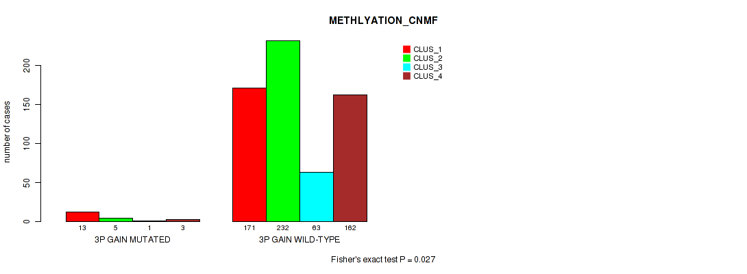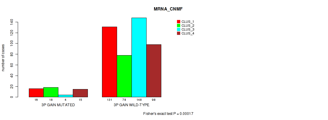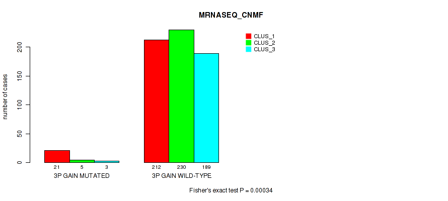3p gain cnv correlated to 'MRNA_CNMF', 'MRNA_CHIERARCHICAL', 'MIR_CHIERARCHICAL', 'CN_CNMF', 'METHLYATION_CNMF', 'MRNASEQ_CNMF', and 'MRNASEQ_CHIERARCHICAL'.