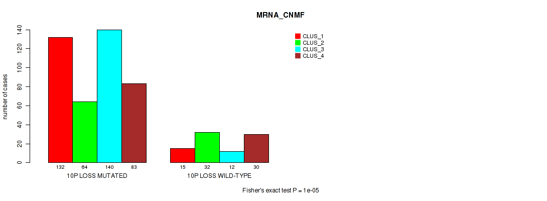 10p loss cnv correlated to 'MRNA_CNMF', 'MRNA_CHIERARCHICAL', 'MIR_CNMF', 'MIR_CHIERARCHICAL', 'CN_CNMF', 'METHLYATION_CNMF', 'MRNASEQ_CNMF', 'MRNASEQ_CHIERARCHICAL', 'MIRSEQ_CNMF', 'MIRSEQ_CHIERARCHICAL', 'MIRSEQ_MATURE_CNMF', and 'MIRSEQ_MATURE_CHIERARCHICAL'.